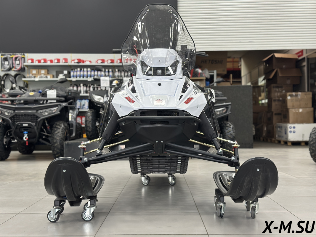 Передняя подвеска двух рычажная, хорошо показавшая себя на снегоходе SF150L, при ходе подвески в 140 мм, позволяет сохранять геометрию колеи лыж в пределах 4-5 мм. Это дает отличную управляемость, устойчивость, маневренность в условиях прохождения неровностей.